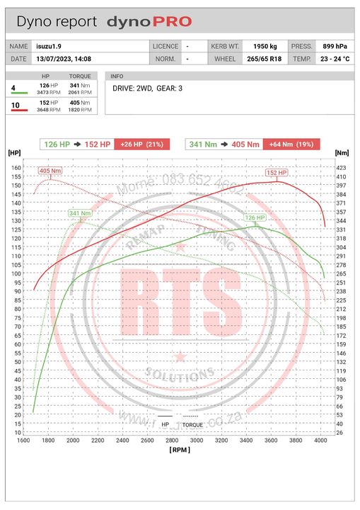 Isuzu 1.9 diesel D-MAX software, remap, chip tuning. 21% more power 19% more torque. End result from 110kw-133kw and 350nm-417nm. Safe reliable tune, no clouds of black smoke. Price R3000.