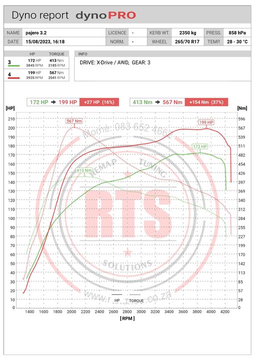 Mitsubishi Pajero 3.2 DID remap, software chip tuning 16% more power 37% more torque end result 140kw-162kw and 441nm-604nm. No clouds of black smoke. Price R3000