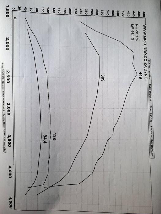 Toyota Hilux D4D 3.0 tested on independant dyno. 45.3% more torque 35.5% more power end result 120kw-162kw and 343-498nm more on flywheel safely no clouds of black smoke. Price R2200